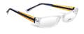 Diese modische Vollrandbrille für Sie und Ihn besticht durch modernes und elegantes Design. Sie ist und aus stabilen Kunststoff gefertigt. Der Grundton der Brille ist wasserhell/transparent, der Bügel in wasserhell-orange und mit einem modischen Metalstreifen in marineblau verziert. Die Brillenfassung wird in einem hochwertigen Brillenetui geliefert.