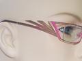 Diese modische Vollrandbrille für Sie besticht durch ihr modernes und ausgefallenes Design. Sie ist und aus stabilem Metal gefertigt. Der Grundton der Brille ist in dunklem gold, hinterlegt in pink. Der Bügel ist in einem aufwenidgen Design gearbeitet. Die Brillenfassung wird in einem hochwertigen Brillenetui geliefert.